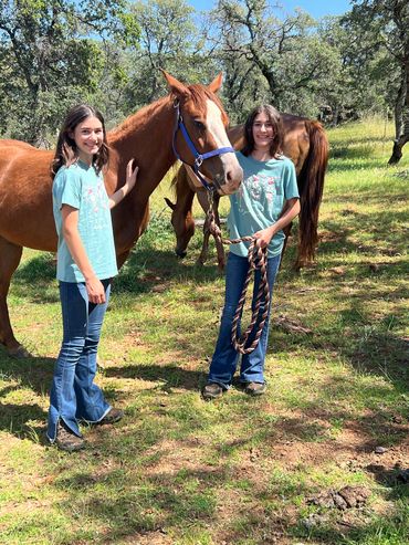Coming from a wild herd, the three fillies are being gentled. Still enjoying freedom here.