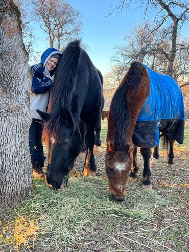 Louis in the background and Paprika Became close friends after the passing of Obelix the beloved Percheron.