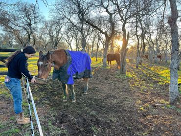 Volunteers from the Possi trailered the rescued horses to us. We scrambled but met the chalenge. Two trucks of hay, grain, vet care, treatments, supplements green pastures, shelters as well as tons of attention was provided. It was heart warming for everyone involved.